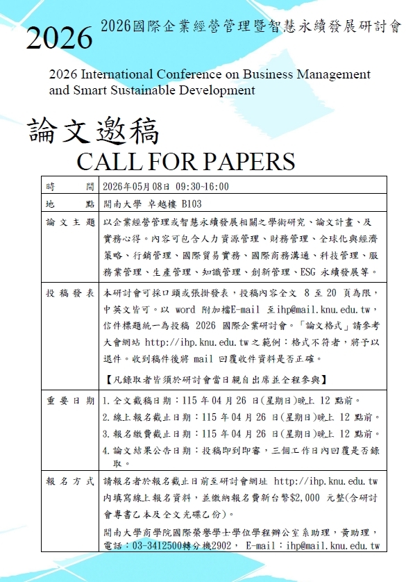 2026國際企業經營管理暨智慧永續發展研討會